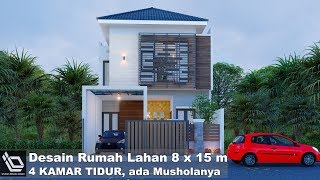 - Desain Rumah Lahan 8 x 15 m 4 kamar tidur, ada musholanya